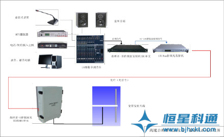 該系統(tǒng)采用 DSP 數(shù)字處理技術(shù)、DDS 數(shù)字頻率合成技術(shù)與現(xiàn)代通信技術(shù),使用一臺“群載波”發(fā)射機發(fā)射無線電信號,實現(xiàn)一定頻帶內(nèi)的所有頻點全覆蓋,接收設(shè)備在任意一個頻點上都可解調(diào)出清晰的音頻信號或數(shù)字信號。